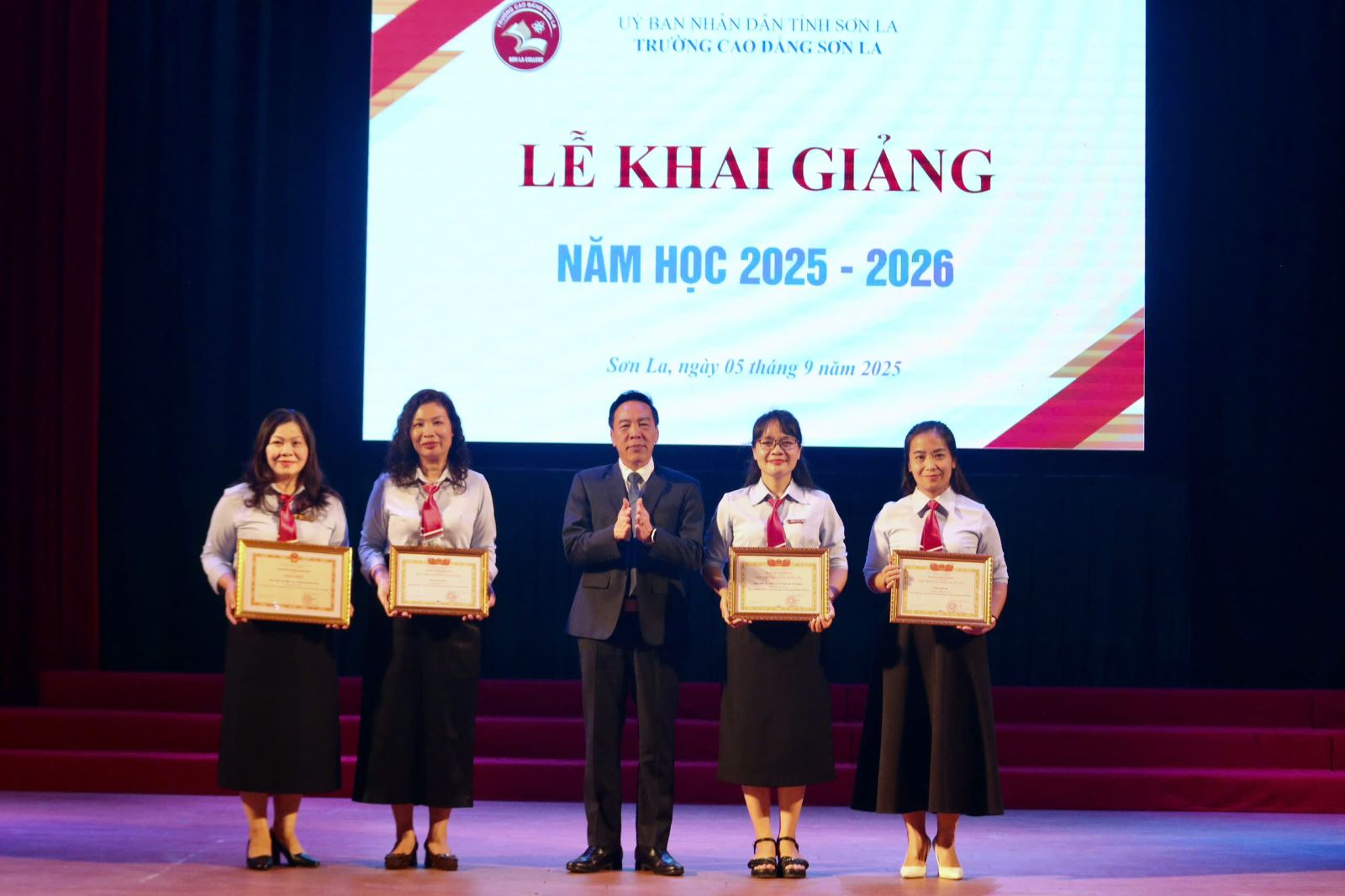 Để ghi nhận thành tích của nhà trường đã đạt được trong năm học 2024 - 2025, UBND tỉnh đã có quyết định tặng danh hiệu Tập thể lao động xuất sắc đối với 3 tập thể và Tặng bằng khen của Chủ tịch UBND tỉnh đối với Khoa GDMN và GDPT vì đã có thành tích xuất sắc trong công tác giáo dục và đào tạo năm học 2023-2024 và năm học 2024-2025; Ban Chấp hành Tỉnh đoàn Sơn La tặng Bằng khen cho cho 1 tập thể và 1 cá nhân có thành tích xuất sắc trong công tác đoàn và phong trào thanh niên Khối Trường học năm học 2024 – 2025; Ban Chấp hành Hội Sinh viên Việt Nam tỉnh Sơn La khen thưởng 3 tập thể, 8 cá nhân có thành tính xuất sắc trong công tác Hội và phong trào sinh viên năm học 2024 – 2025; Trao học bổng khuyến học của Quỹ học bổng Tô Hiệu cho 15 cá nhân; Ngân hàng TMCP Bắc Á, Chi nhánh Sơn La trao tài trợ cho 10 cá nhân.