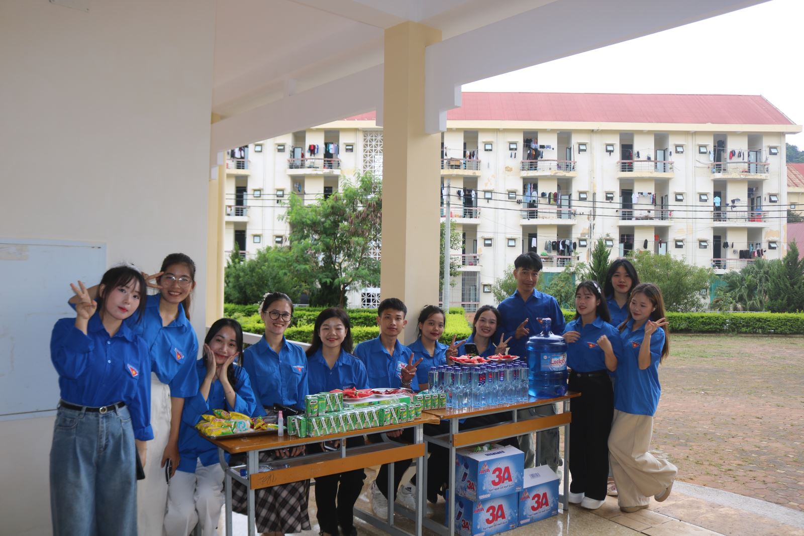 Đội thanh niên tình nguyện nhà trường hỗ trợ đón tiếp, hướng dẫn thí sinh đến địa điểm sơ tuyển