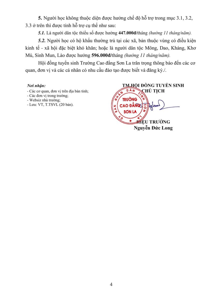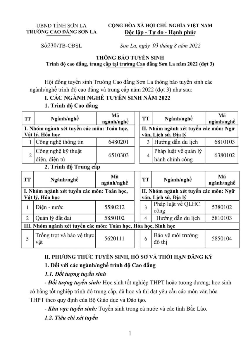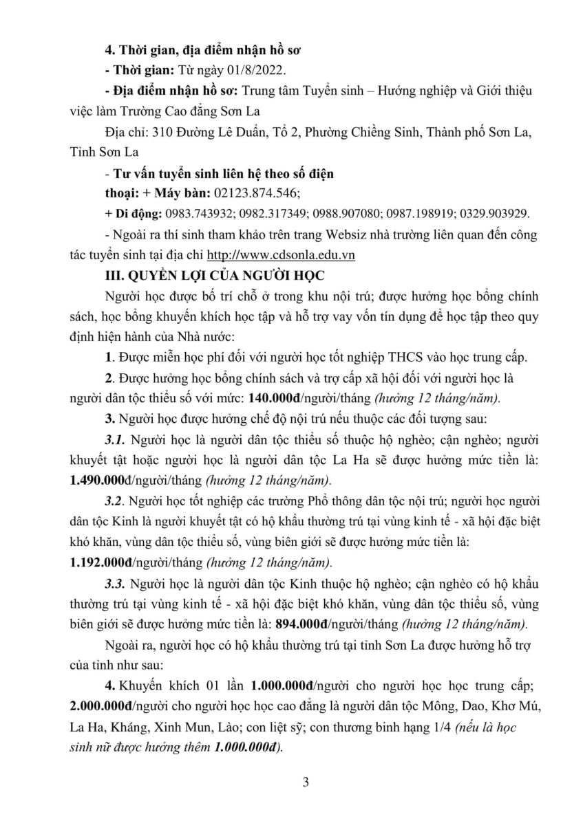Hội đồng tuyển sinh Trường cao đẳng Sơn La thông báo tuyển sinh các ngành/ nghề trình độ Cao đẳng và Trung cấp năm 2022 (đợt 3).