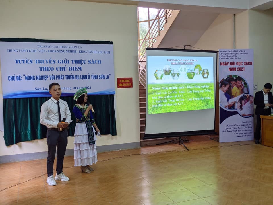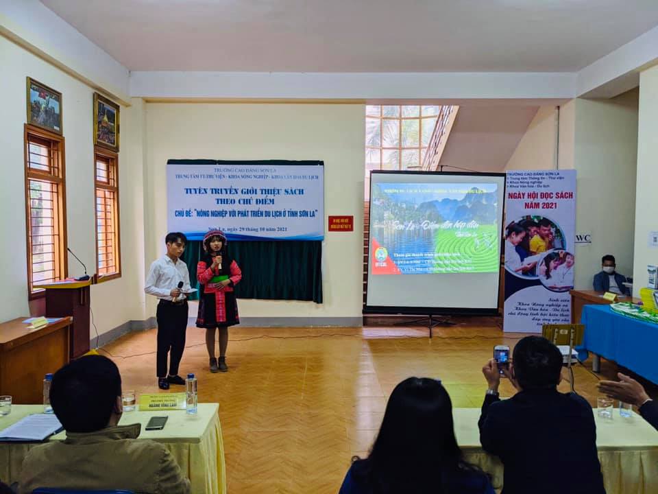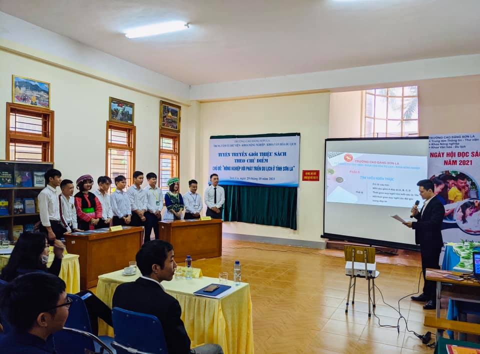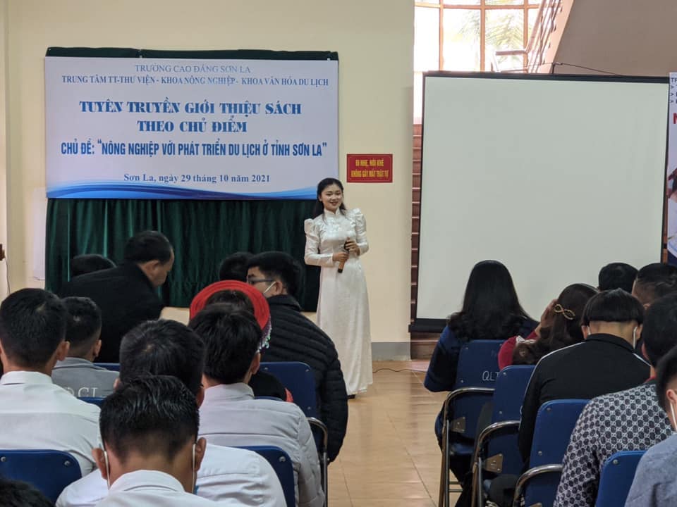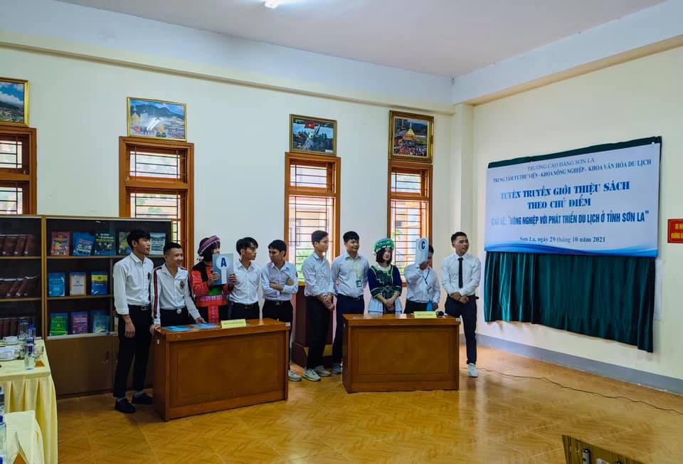 Theo đúng Kế hoạch, sáng ngày 29/10/2021, Trung tâm Thông tin - Thư viện Trường Cao đẳng Sơn La đã phối hợp với Khoa Nông nghiệp và Khoa Văn hóa Du lịch tổ chức buổi tuyên truyền giới thiệu sách theo chủ điểm, chủ đề: “Nông nghiệp với phát triển du lịch ở tỉnh Sơn La”.